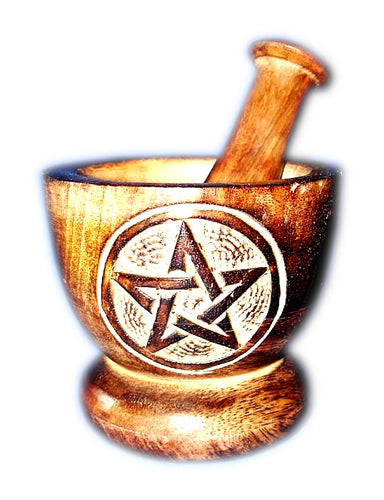 Pilão Artesanal de Madeira com Pentagrama 8,5 cm diam