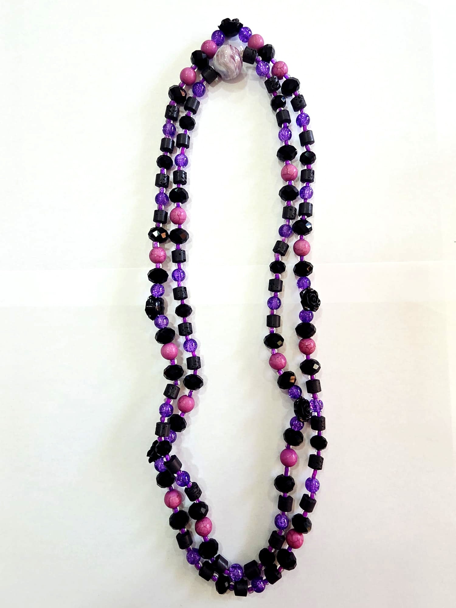 Fio de contas com contas de vidro.